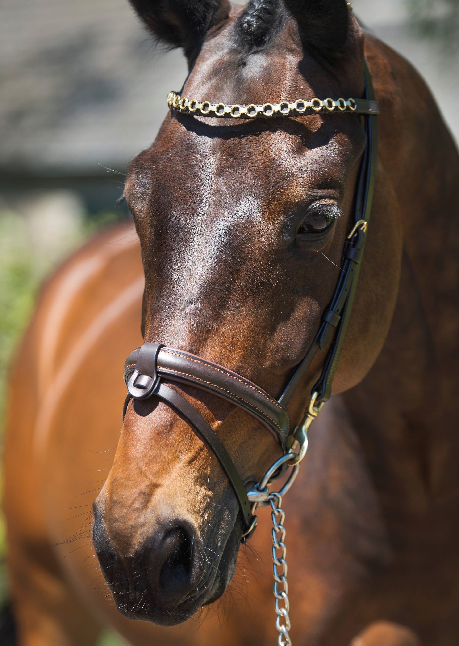 Luxe Showtime Trainingshoofdstel – Verstelbaar Kopstuk met Gold-Plated Musketons