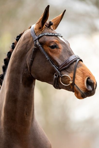 Dit hoogwaardige hoofdstel is speciaal ontwikkeld voor maximaal comfort en een perfecte pasvorm. Het anatomisch zeer zacht onderlegde en teruggesneden kopstuk is zo ontworpen dat de druk achter de oren en op het hoofd wordt verzacht. De anatomisch gevormde neusriem sluit optimaal aan op de neus en verlaagt de druk, waardoor het draagcomfort voor het paard aanzienlijk wordt verhoogd.